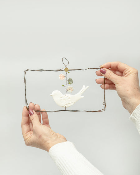 Decorazione in porcellana e ferro "Rettangolo" con uccellino (L)