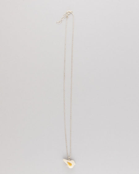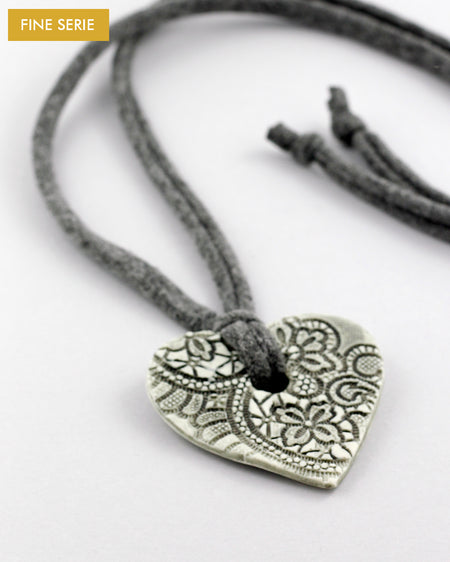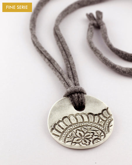 Le collane sono realizzate con elementi in porcellana modellati in forme diverse. Sono proposti modelli in argento e in acciaio, completati da finiture preziose come oro e platino. Vengono montate in modi differenti, a mano, con cura, osservando come gli elementi possono funzionare al meglio e risultare massimamente valorizzati.